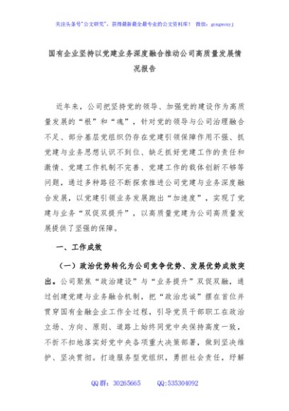 / 国有企业坚持以党建业务深度融合推动公司高质量发展情况报告