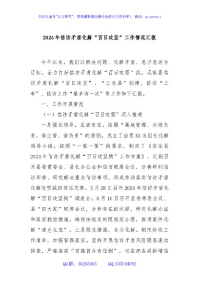 / 2024年信访矛盾化解“百日攻坚”工作情况汇报