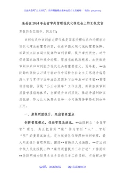 / 某县在2024年全省审判管理现代化推进会上的汇报发言