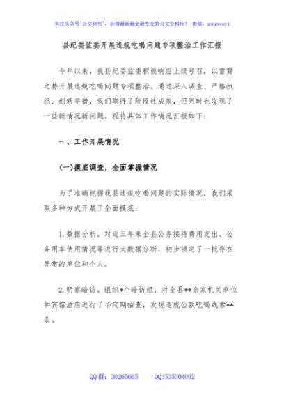/ 县纪委监委开展违规吃喝问题专项整治工作汇报