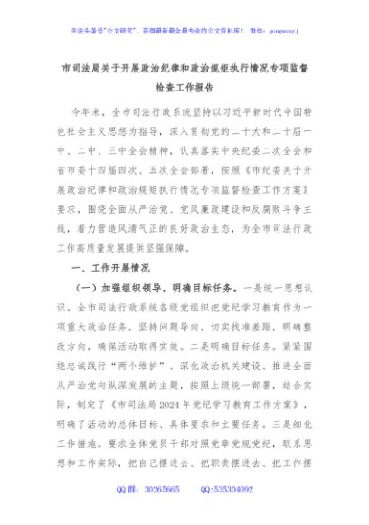 / 市司法局关于开展政治纪律和政治规矩执行情况专项监督检查工作报告