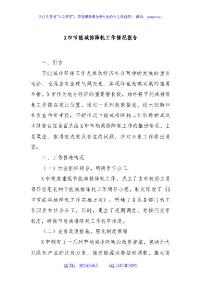 / X市节能减排降耗工作情况报告