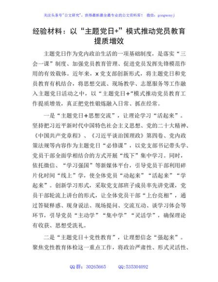 / 经验总结:以“主题党日+”模式推动党员教育提质增效