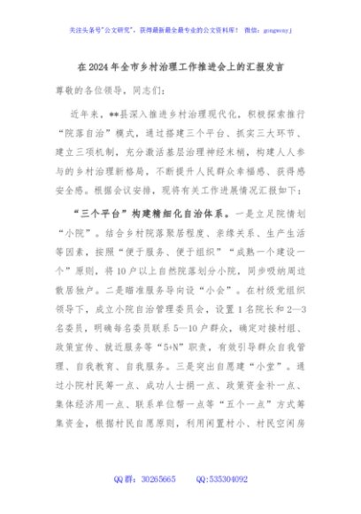 / 在2024年全市乡村治理工作推进会上的汇报发言