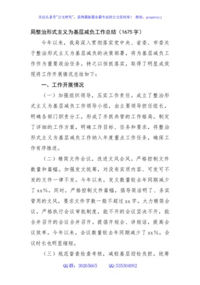 局整治形式主义为基层减负工作总结(1675字)