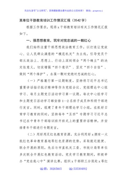 / 某单位干部教育培训工作情况汇报(3542字)