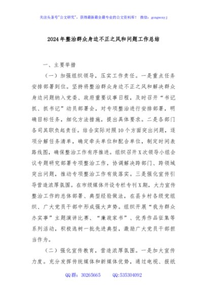 / 2024年整治群众身边不正之风和问题工作总结