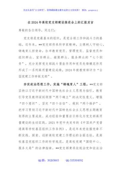 / 在2024年高校党支部建设推进会上的汇报发言