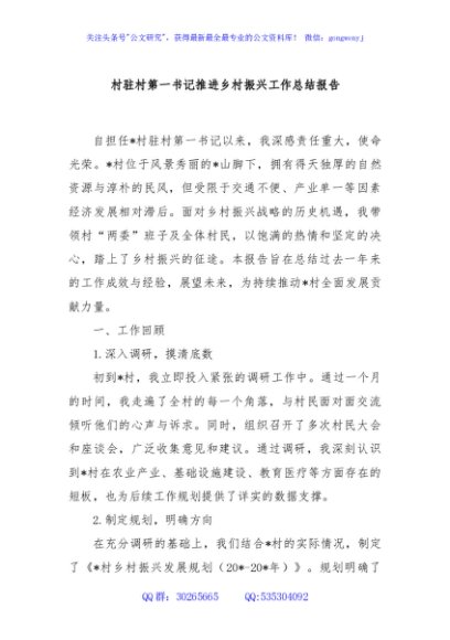村驻村第一书记推进乡村振兴工作总结报告