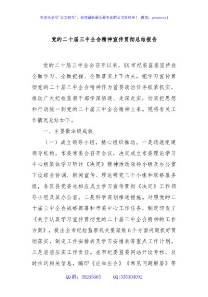 / 党的二十届三中全会精神宣传贯彻总结报告