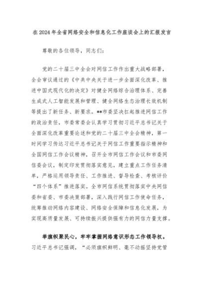 / 在2024年全省网络安全和信息化工作座谈会上的汇报发言