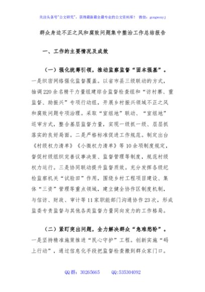 / 群众身边不正之风和腐败问题集中整治工作总结报告