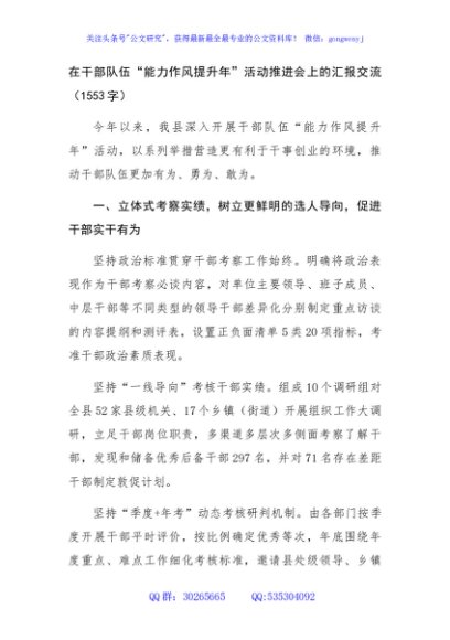 / 在干部队伍“能力作风提升年”活动推进会上的汇报交流(1553字)