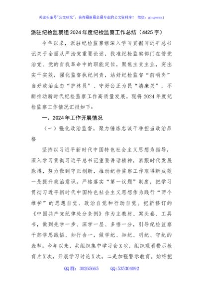 / 派驻纪检监察组2024年度纪检监察工作总结(4425字)