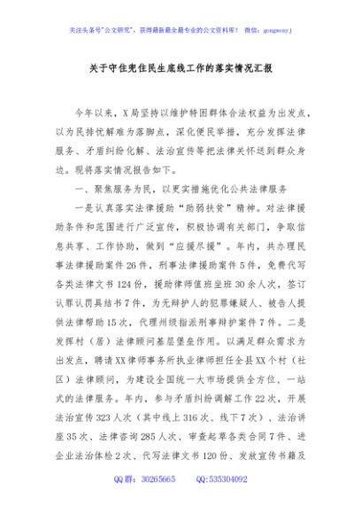 / 关于守住兜住民生底线工作的落实情况汇报