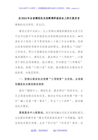 / 在2024年全省模范机关创建调研座谈会上的汇报发言