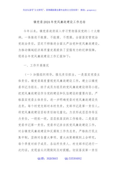 / 镇党委2024年党风廉政建设工作总结