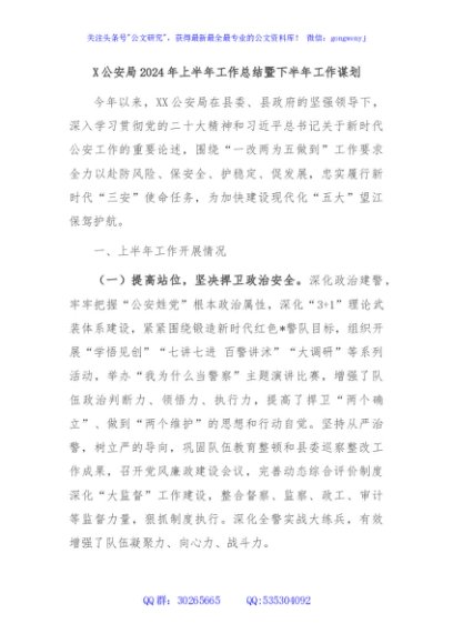 / X公安局2024年上半年工作总结暨下半年工作谋划