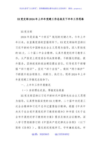 / XX党支部2024年上半年党建工作总结及下半年工作思路