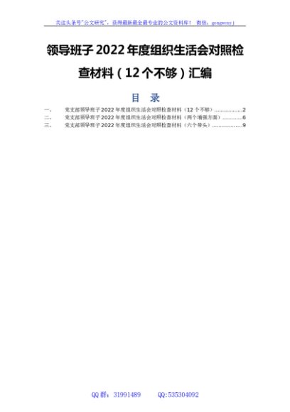 领导班子2022年度组织生活会对照检查材料(3篇)